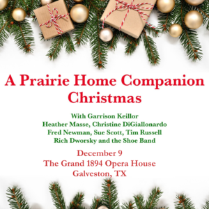 A Prairie Home Companion Christmas show comes to Galveston, TX with Heather Masse, Christine DiGiallonardo, the Royal Academy of Actors and Richard Dworsky and the Shoe Band.