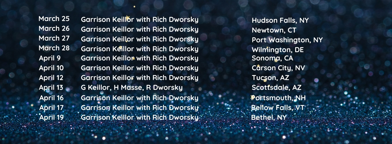 A Prairie Home Christmas A Prairie Home Companion A Prairie Home Companion Christmas An Evening of Story and Song Humor Love & Comedy Tour Old Friends Poetry Prairie Home Christmas Show Solo Songs Stories The Gratitude Tour