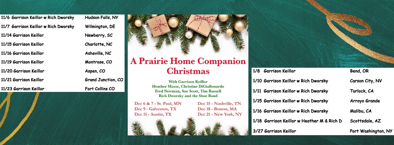 A Prairie Home Christmas A Prairie Home Companion A Prairie Home Companion Christmas An Evening of Story and Song Humor Love & Comedy Tour Old Friends Poetry Prairie Home Christmas Show Solo Songs Stories The Gratitude Tour